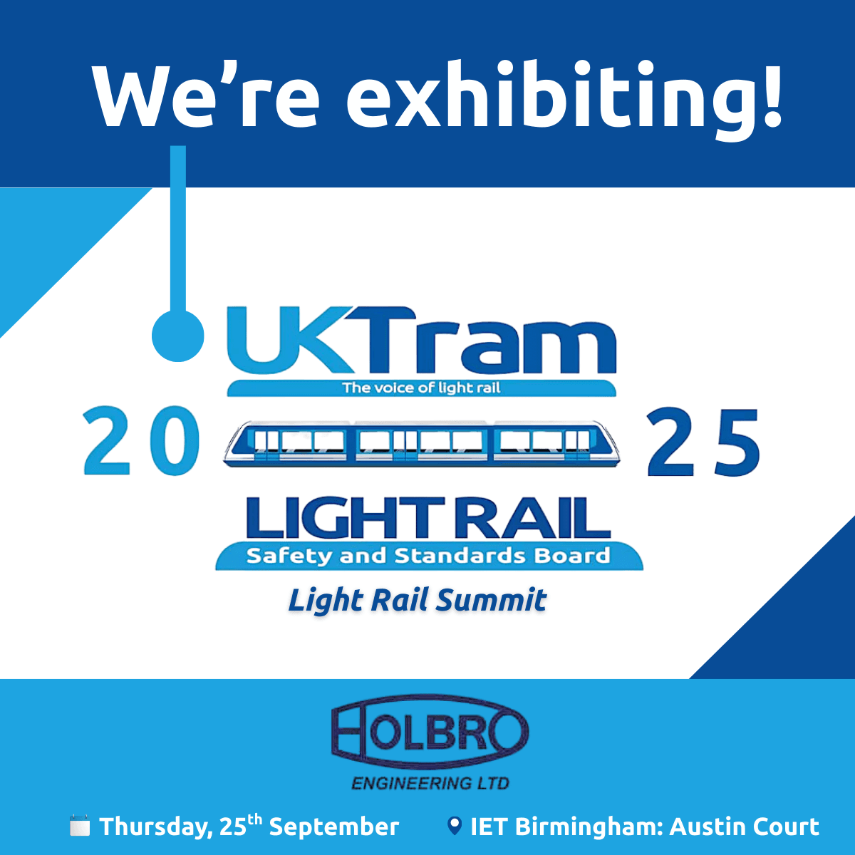 Holbro News UKTram Light Rail Summit 2025 Holbro Engineering are delighted to be attending as an exhibitor at the UKTram Light Rail Summit 2025. Come along and visit us at IET Austin September 15, 2025 No Comments